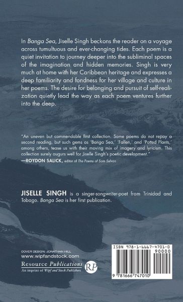 Jiselle Singh is a singer-songwriter-poet from Trinidad and Tobago. Banga Sea is her first publication.
