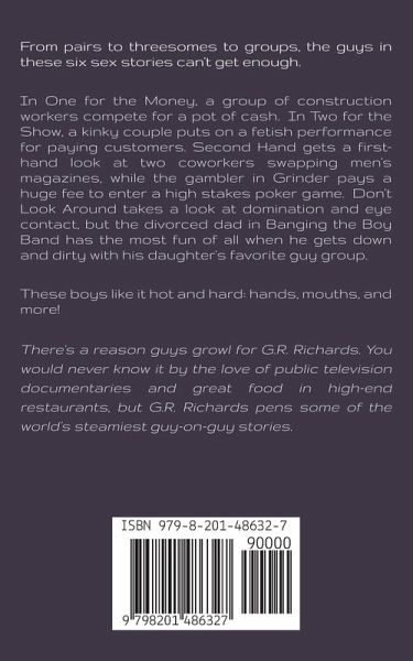 From pairs to threesomes to groups, the guys in these six sex stories can't get enough. In One for the Money, a group of construction workers compete for a pot of cash. In Two for the Show, a kinky couple puts on a fetish performance for paying customers. Second Hand gets a first-hand look at two coworkers swapping men's magazines, while the gambler in Grinder pays a huge fee to enter a high stakes poker game. Don't Look Around takes a look at domination and eye contact, but the divorced dad in Banging the Boy Band has the most fun of all when he gets down and dirty with his daughter's favorite guy group. These boys like it hot and hard: hands, mouths, and more!