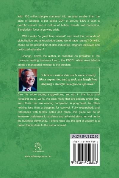 With 130 million people crammed into an area smaller than the state of Georgia, a per capita GDP of around $300 a year, a quixotic climate and a culture of bribes, threats and corruption, Bangladesh faces a growing crisis. Will it make "a great leap forward" and meet the demands of globalization and a knowledge-based world trade regime? Or will it choke on the polluted air of stale industries, stagnant initiatives and politicized education? Change, claims the author, is essential. As president of the country's leading business forum, the FBCCI, Abdul Awal Mintoo brings a managerial mindset to the problem: Can his wide-ranging suggestions, set out in this lucid and revealing study, work? He cites many that are already under way, and others that are nearing completion. A pragmatist, he offers nothing less than a blueprint for survival. Fully researched, and referenced with tables, notes and maps, this guide will be of immense usefulness to students and administrators, as well as to the business community. It offers hope and the light of wisdom to a nation that is close to the author's heart.