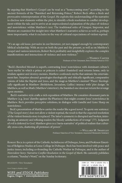 By arguing that Matthew's Gospel can be read as a "homecoming story" according to the ancient formula of the "Banished and Returning Prince," Robert Beck offers a fresh and provocative reinterpretation of the Gospel. He exploits this understanding of the narrative to disclose new elements within the plot, to identify a fresh resolution to conflict development within the tale, and to arrive at an unprecedented explanation of the place of violence and nonviolence within Matthew's text. The traditional roles of Usurper, Impostor, and Mentor are examined for insight into what Matthew's narrative achieves as well as, perhaps more importantly, what it excludes in the way of cultural expectations of violent reprisal.