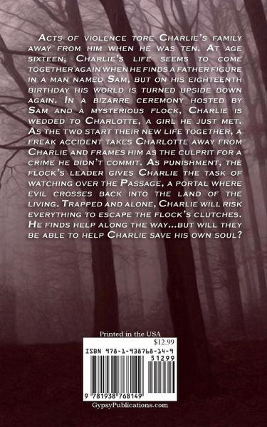 Acts of violence tore Charlie's family away from him when he was ten. At age sixteen, Charlie's life seems to come together again when he finds a father figure in a man named Sam, but on his eighteenth birthday his world is turned upside down again. In a bizarre ceremony hosted by Sam and a mysterious flock, Charlie is wedded to Charlotte, a girl he just met. As the two start their new life together, a freak accident takes Charlotte away from Charlie and frames him as the culprit for a crime he didn't commit. As punishment, the flock's leader gives Charlie the task of watching over the Passage, a portal where evil crosses back into the land of the living. Trapped and alone, Charlie will risk everything to escape the flock's clutches. He finds help along the way...but will they be able to help Charlie save his own soul?