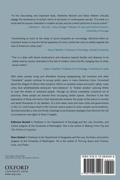 With urban poverty rising and affordable housing disappearing, the homeless and other "disorderly" people continue to occupy public space in many American cities. Concerned about the alleged ill effects their presence inflicts on property values and public safety, many cities have wholeheartedly embraced "zero-tolerance" or "broken window" policing efforts to clear the streets of unwanted people. Through an almost completely unnoticed set of practices, these people are banned from occupying certain spaces. Once zoned out, they are subject to arrest if they return-effectively banished from public places. Banished is the first exploration of these new tactics that dramatically enhance the power of the police to monitor and arrest thousands of city dwellers. Drawing upon an extensive body of data, the authors chart the rise of banishment in Seattle, a city on the leading edge of this emerging trend, to establish how it works and explore its ramifications. They demonstrate that, although the practice allows police and public officials to appear responsive to concerns about urban disorder, it is a highly questionable policy: it is expensive, does not reduce crime, and does not address the underlying conditions that generate urban poverty. Moreover, interviews with the banished themselves reveal that exclusion makes their lives and their path to self-sufficiency immeasurably more difficult. At a time when more and more cities and governments in the U.S. and Europe resort to the criminal justice system to solve complex social problems, Banished provides a vital and timely challenge to exclusionary strategies that diminish the life circumstances and rights of those it targets.