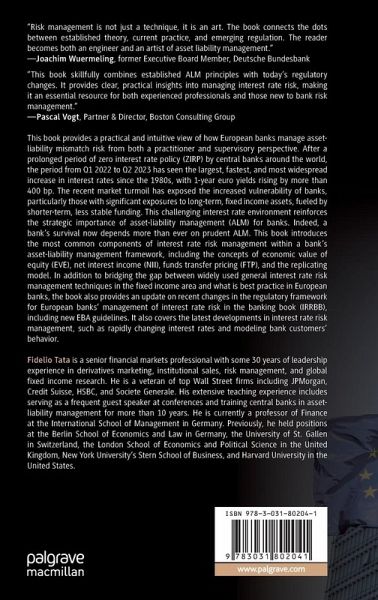Introduction.- ALM Techniques.- Bank ALM in Practice.- Case Study: The Collapse of Silicon Valley Bank.- Update on Regulatory and Supervisory Changes to IRRBB.- The Future of ALM.