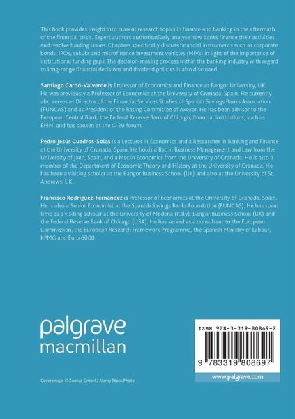 This book provides insight into current research topics in finance and banking in the aftermath of the financial crisis. Expert authors authoritatively analyse how banks finance their activities and resolve funding issues. Chapters specifically discuss financial instruments such as corporate bonds, IPOs, sukuks and microfinance investment vehicles (MIVs) in light of the importance of institutional funding gaps. The decision-making process within the banking industry with regard to long-range financial decisions and dividend policies is also discussed.