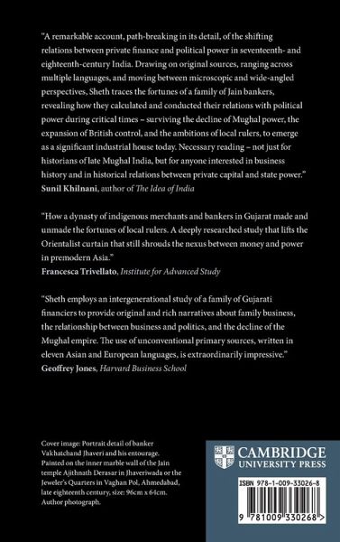 Introduction 1. Prelude: The Mughal Empire, 1526-1750 2. Courtly mutualism: the emperor's jeweler Shantidas Jhaveri, 1628-1658 3. Political commensalism: Manekchand Jhaveri and bankrolling bids to the throne, 1658-1707 4. Interlude: cultivating financial crisis under Aurangzeb, 1660s-1719 5. Expedient extortion: the governor's golden goose Khushalchand Jhaveri, 1719-1730 6. Competitive coparcenary: Vakhatchand Jhaveri and brokering politics, 1730-1818 7. Postlude: Bankrollers of Mughal succession, 1750-1818 Conclusion Appendices Glossary Bibliography Index.
