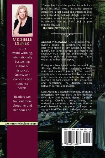 A SECRET TREATY AND A SECRET LIFE REGENCY LONDON: Giselle Barrington is living a double life, juggling the duties of chef with those of spy-catcher. She must identify her father's savage killer before the shadowy man finds her and uncovers the explosive political document her father entrusted to her safekeeping. Posing as a French cook in the home of Lord Aldridge, Giselle is surrounded by unlikely allies and vicious enemies. In the London streets where she once walked freely among polite society, she now hides in plain sight, learning the hard lessons of class distinction and negotiating the delicate balance between servant and master. Lord Aldridge's insatiable curiosity about his mysterious new chef blurs the line between civic duty and outright desire. Carefully watching Giselle's every move, he undertakes a mission to figure out who she really is-and in the process, plunges her straight into the heart of danger when her only hope for survival was to remain invisible.