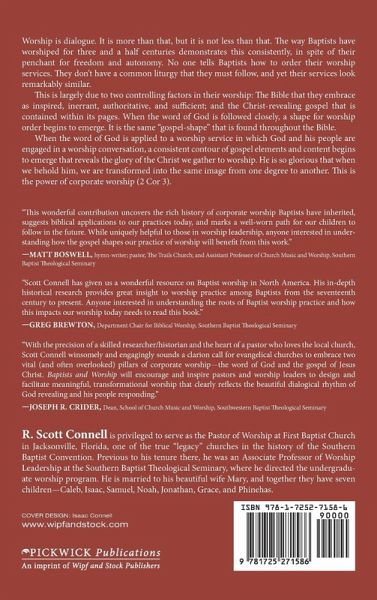 Worship is dialogue. It is more than that, but it is not less than that. The way Baptists have worshiped for three and a half centuries demonstrates this consistently, in spite of their penchant for freedom and autonomy. No one tells Baptists how to order their worship services. They don't have a common liturgy that they must follow, and yet their services look remarkably similar. This is largely due to two controlling factors in their worship: The Bible that they embrace as inspired, inerrant, authoritative, and sufficient; and the Christ-revealing gospel that is contained within its pages.…mehr