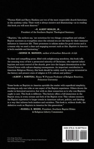 The Puritans called Baptists "the troublers of churches in all places" and hounded them out of Massachusetts Bay Colony. Four hundred years later, Baptists are the second-largest religious group in America, and their influence matches their numbers. They have built strong institutions, from megachurches to publishing houses to charities to mission organizations, and have firmly established themselves in the mainstream of American culture. Yet the historical legacy of outsider status lingers, and the inherently fractured nature of their faith makes Baptists ever wary of threats from within as well as without. In Baptists in America, Thomas S. Kidd and Barry Hankins explore the long-running tensions between church, state, and culture that Baptists have shaped and navigated. Despite the moment of unity that their early persecution provided, their history has been marked by internal battles and schisms that were microcosms of national events, from the conflict over slavery that divided North from South to the conservative revolution of the 1970s and 80s. Baptists have made an indelible impact on American religious and cultural history, from their early insistence that America should have no established church to their place in the modern-day culture wars, where they frequently advocate greater religious involvement in politics. Yet the more mainstream they have become, the more they have been pressured to conform to the mainstream, a paradox that defines--and is essential to understanding--the Baptist experience in America. Kidd and Hankins, both practicing Baptists, weave the threads of Baptist history alongside those of American history. Baptists in America is a remarkable story of how one religious denomination was transformed from persecuted minority into a leading actor on the national stage, with profound implications for American society and culture.