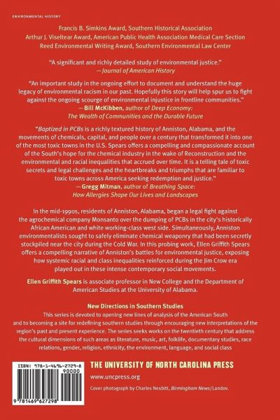 In the mid-1990s, residents of Anniston, Alabama, began a legal fight against the agrochemical company Monsanto over the dumping of PCBs in the city’s historically African American and white working-class west side. Simultaneously, Anniston environmentalists sought to safely eliminate chemical weaponry that had been secretly stockpiled near the city during the Cold War. In this probing work, Ellen Griffith Spears offers a compelling narrative of Anniston’s battles for environmental justice, exposing how systemic racial and class inequalities reinforced during the Jim Crow era played out in these intense contemporary social movements. Spears focuses attention on key figures who shaped Anniston — from Monsanto’s founders, to white and African American activists, to the ordinary Anniston residents whose lives and health were deeply affected by the town’s military-industrial history and the legacy of racism. Situating the personal struggles and triumphs of Anniston residents within a larger national story of regulatory regimes and legal strategies that have affected toxic towns across America, Spears unflinchingly explores the causes and implications of environmental inequalities, showing how civil rights movement activism undergirded Anniston’s campaigns for redemption and justice.