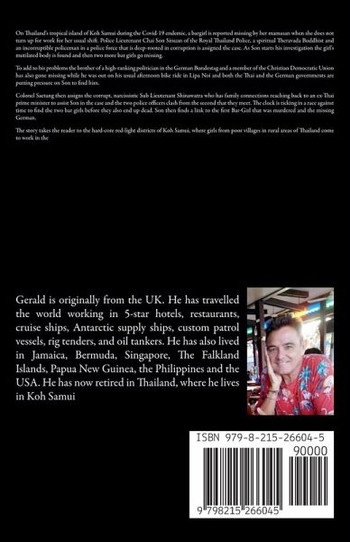 On Thailand's tropical island of Koh Samui during the Covid-19 endemic, a bargirl is reported missing by her mamasan when she does not turn up for work for her usual shift. Police Lieutenant Chai Son Sinuan of the Royal Thailand Police, a spiritual Theravada Buddhist and an incorruptible policeman in a police force that is deep-rooted in corruption is assigned the case. As Son starts his investigation the girl's mutilated body is found and then two more bar girls go missing. To add to his problems the brother of a high-ranking politician in the German Bundestag and a member of the Christian Democratic Union has also gone missing while he was out on his usual afternoon bike ride in Lipa Noi and both the Thai and the German governments are putting pressure on Son to find him. Colonel Saetang then assigns the corrupt, narcissistic Sub Lieutenant Shinawatra who has family connections reaching back to an ex-Thai prime minister to assist Son in the case and the two police officers clash from the second that they meet. The clock is ticking in a race against time to find the two bar girls before they also end up dead. Son then finds a link to the first Bar-Girl that was murdered and the missing German. The story takes the reader to the hard-core red-light districts of Koh Samui, where girls from poor villages in rural areas of Thailand come to work in the