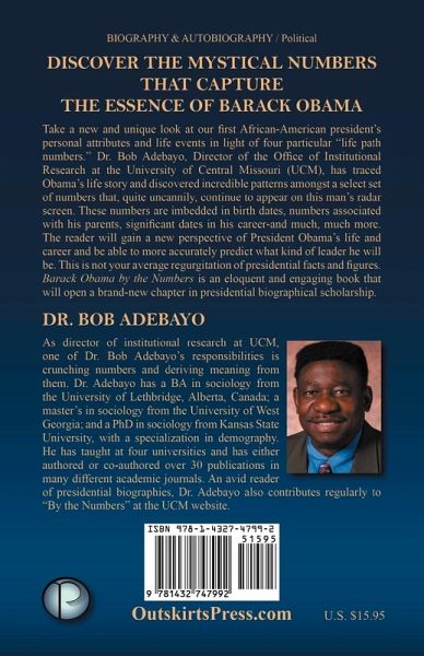 Discover the mystical numbers that capture the essence of Barack Obama Take a new and unique look at our first African-American president's personal attributes and life events in light of four particular "life path numbers." Dr. Bob Adebayo, Director of the Office of Institutional Research at the University of Central Missouri (UCM), has traced Obama's life story and discovered incredible patterns amongst a select set of numbers that, quite uncannily, continue to appear on this man's radar screen. These numbers are imbedded in birth dates, numbers associated with his parents, significant dates in his career-and much, much more. The reader will gain a new perspective of President Obama's life and career and be able to more accurately predict what kind of leader he will be. This is not your average regurgitation of presidential facts and figures. Barack Obama by the Numbers is an eloquent and engaging book that will open a brand-new chapter in presidential biographical scholarship.