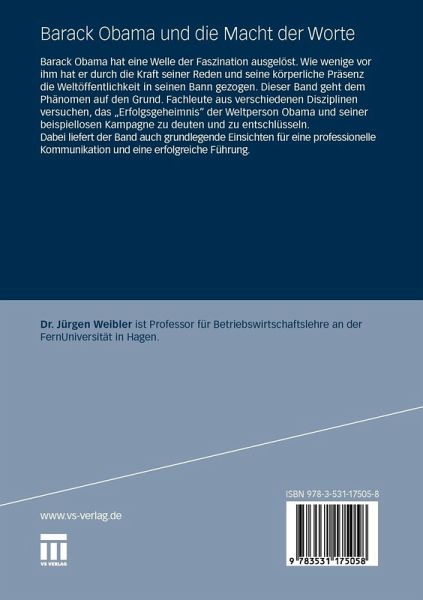 Barack Obama hat eine Welle der Faszination ausgelöst. Wie wenige vor ihm hat er durch die Kraft seiner Reden und seine körperliche Präsenz die Weltöffentlichkeit in seinen Bann gezogen. Dieser Band geht dem Phänomen auf den Grund. Fachleute aus verschiedenen Disziplinen versuchen, das "Erfolgsgeheimnis" der Weltperson Obama und seiner beispiellosen Kampagne zu deuten und zu entschlüsseln. Dabei liefert der Band auch grundlegende Einsichten für eine professionelle Kommunikation und eine erfolgreiche Führung.