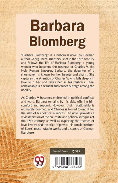 "Barbara Blomberg" is a historical novel by German author Georg Ebers. The story is set in the 16th century and follows the life of Barbara Blomberg, a young woman who becomes the mistress of Charles V, the Holy Roman Emperor. Barbara, the daughter of a shoemaker, is known for her beauty and charm. She captures the attention of Charles V, who falls deeply in love with her and takes her as his mistress. Their relationship is a scandal and causes outrage among the nobility. As Charles V becomes embroiled in political conflicts and wars, Barbara remains by his side, offering him comfort and support. However, their relationship is ultimately doomed, and Charles is forced to end it for the sake of his political alliances. The novel provides a vivid depiction of the court life and political intrigues of the 16th century, as well as exploring the themes of love, loyalty, and the price of power. It is considered one of Ebers' most notable works and a classic of German literature.
