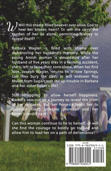 Will this shame-filled believer ever allow God to heal her broken heart? Or will she carry the burden of her lie alone, permitting history to repeat itself? Barbara Wagler is filled with shame over dishonoring her husband's memory. While the young Amish woman is devastated after her husband of five years dies in a farming accident, she is left to raise their sons alone. When her first love, Joseph Wagler, returns to Willow Springs, can they bury the past, or will widower Roy Mullet from Sugarcreek stir up trouble in Barbara and her sister Susan's life? Still struggling to allow herself happiness, Barbara sets out on a journey to reveal the truth of her mistakes. But her honesty leads her to question God's ultimate promises and her father's sordid past. Can this woman continue to lie to herself, or will she find the courage to boldly go to God and allow him to lead her on a path of deliverance?