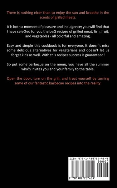 There is nothing nicer than to enjoy the sun and breathe in the scents of grilled meats. It is both a moment of pleasure and indulgence; you will find that I have selected for you the best recipes of grilled meat, fish, fruit, and vegetables - all colorful and amazing. Easy and simple this cookbook is for everyone. It doesn’t miss some delicious alternatives for vegetarians and doesn’t let us forget kids as well. With this recipes success is guaranteed! So put some barbecue on the menu, you have all the summer which invites you and your family to the table. Open the door, turn on the grill, and treat yourself by turning some of our fantastic barbecue recipes into the reality.