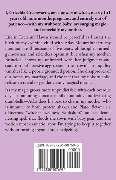I, Grizelda Greenwarth, am a powerful witch, nearly 141 years old, nine months pregnant, and entirely out of patience-with my stubborn baby, my surging magic, and especially my mother. Life in Evershift Haven should be peaceful as I await the birth of my overdue child with Atlas Mountainheart, my mountain troll husband of five years, philosopher-turned-gym-owner, and relentless optimist, but when my mother, Brunelda, shows up uninvited with her judgments and cauldron of passive-aggression, the town's tranquility vanishes like a poorly grounded potion. She disapproves of our home, my marriage, and the fact that my unborn child refuses to reveal its gender via any magical means. As my magic grows more unpredictable with each overdue day-summoning chocolate milk fountains and levitating dumbbells-Atlas does his best to charm my mother, who is immune to both protein shakes and Plato. Between a disastrous "witcher wellness workshop," an accidental nesting spell that floods the town with baby gear, and the world's most dramatic labor, I'm trying to keep it together without turning anyone into a hedgehog. Welcome back one final time to Evershift Haven, where magic is seasonal, motherhood is unpredictable, and love comes with a dash of sparkles and squat racks. Barbells & Broomsticks is the cozy, whimsical, heart-filled finale to a series where even the most magical chaos can't outshine the glow of finding exactly where you belong.