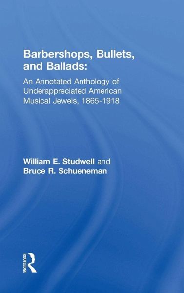 Through Barbershops, Bullets, and Ballads: An Annotated Anthology of Underappreciated American Musical Jewels, 1865-1918, you will discover older musical gems written during a half-century period of geographical, economic, political, and cultural expansion in the United States. Due to the fact that our collective American consciousness is rapidly developing cultural amnesia about or indifference to many of these older songs, the authors felt that a scholarly anthology needed to be produced before another century and millennium overwhelmed us. Through Barbershops, Bullets, and Ballads, you will…mehr