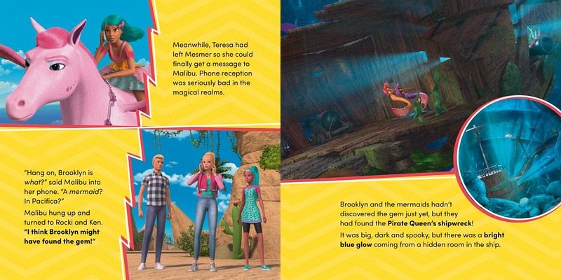 Dive into an underwater adventure and join the mermaid Barbies on a quest to retrieve the magical water gem!