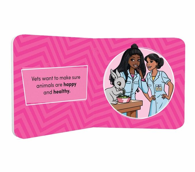 Discover a world of possibilities with Barbie in this adorable collection of inspiring board books for the youngest Barbie fans. Not even the sky is the limit - from pilot and scientist to teacher and footballer, Barbie is out to prove that you can be anything! Little ones love imagining what their future job will be and this collection of six mini board books is the perfect bite-size introduction to a range of careers. Discover how a vet cares for different animals, fly high with the brave pilots, inspire creativity as a fashion designer and more. The Barbie Pocket Library is a great way for parents to introduce their small children to big dreams and a bright future. This set is small enough to carry with you, so the books can be used to entertain children wherever you go. Little ones will also love placing the book back covers in the right order to reveal a big picture of all the inspiring career Barbies.