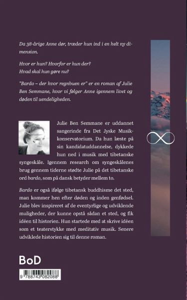 Da 38-årige Anne dør, træder hun ind i en helt ny dimension. Hvor er hun? Hvorfor er hun der? Hvad skal hun gøre nu? "Bardo - der hvor regnbuen er" er en roman af Julie Ben Semmane, hvor vi følger Anne igennem livet og døden til uendeligheden.