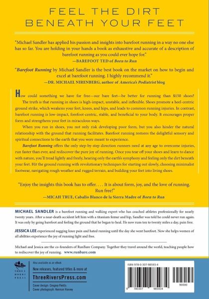 How could something we have for free-our bare feet-be better for running than $150 shoes? The truth is that running in shoes is high-impact, unstable, and inflexible. Shoes promote a heel-centric ground strike, which weakens your feet, knees, and hips, and leads to common running injuries. In contrast, barefoot running is low-impact, forefoot-centric, stable, and beneficial to your body. It encourages proper form and strengthens your feet in miraculous ways. When you run in shoes, you not only risk developing poor form, but you also hinder the natural relationship with the ground that running facilitates. Barefoot running restores the delightful sensory and spiritual connections to the earth that you were meant to experience. Barefoot Running offers the only step-by-step direction runners need at any age to overcome injuries, run faster than ever, and rediscover the pure joy of running. Once you tear off your shoes and learn to dance with nature, you'll tread lightly and freely, hearing only the earth's symphony and feeling only the dirt beneath your feet. Hit the ground running with revolutionary techniques for starting out slowly, choosing minimalist footwear, navigating rough weather and rugged terrain, and building your feet into living shoes.