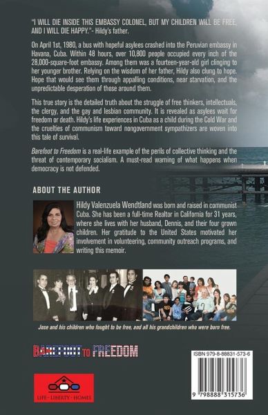 Life under communism is cruel and inhumane for non-government sympathizers.On April 1st, 1980, a bus crashed into the Peruvian Embassy in Habana, Cuba with hopeful asylees. Within 48 hours, over 10,000 people occupied every inch of the 28,000-square-foot embassy. Hildy takes us on an incredibly detailed journey of the 45-day occupation. The book is filled with vivid details of misery, without food, sanitation, or hope. The anecdotes of her life experience in Cuba as a child during the cold war, and the cruelties of communism toward young nongovernment sympathizers are reviving. This book is full of stories of real-life cases, and the marginalization of free thinkers, intellectuals, the clergy, and the gay and lesbian community. Barefoot walk to freedom is an eye opener about the perils of collective thinking and the thread of contemporary socialism. It guides the reader to overcome life's improbable and intolerable challenges. A must-read for young adults to make help them aware of what will happen if they do not protect and defend democracy. This book is a page-turner, 100% accurate and detailed.