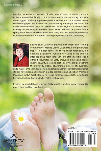 Barefoot, a memoir and sequel to Road to Mound Grove, continues the story of Betty Jean and her family in rural southeastern Oklahoma as they deal with the struggles of life during the Depression and benefits of Roosevelt’s New Deal leading up to World War II. Betty Jean’s family and neighbors lacked the modern conveniences that town folk enjoyed. Some neighbors had water wells in their yards, but Betty Jean and her sister, Olaree, still had to carry water from a spring in the woods. They find themselves living in a chicken house, electricity illuminating the countryside, and a hunting tragedy shakes the community.