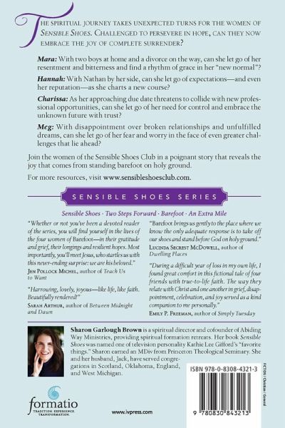 Logos Bookstore Association Award Foreword INDIES Book of the Year Awards Finalist The spiritual journey takes unexpected turns for the women of Sensible Shoes in this third book of the series, continuing on from the events of Two Steps Forward. Having been challenged to persevere in hope, can they now embrace the joy of complete surrender? Mara: With two boys at home and a divorce on the way, can she let go of her resentment and bitterness and find a rhythm of grace in her "new normal"? Hannah: With Nathan by her side, can she let go of expectations-and even her reputation-as she charts a new course? Charissa: As her approaching due date threatens to collide with new professional opportunities, can she let go of her need for control and embrace the unknown future with trust? Meg: With disappointment over broken relationships and unfulfilled dreams, can she let go of her fear and worry in the face of even greater challenges that lie ahead? Join the women of the Sensible Shoes Club in a poignant story that reveals the joy that comes from laying our lives at the feet of God and standing barefoot on holy ground.