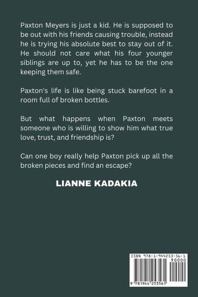 Paxton Meyers is a young person. He should be out causing trouble with his friends, but instead he is doing everything in his power to avoid it. He shouldn't be concerned about what his four younger siblings are doing, but he is the one responsible for keeping them secure. He should have a promising career ahead of him, but for some reason, he doesn't even know whether he will survive another week. He ought to have two loving parents, but he was given an alcoholic and a jerk for parents. Living in a room full of broken bottles while barefoot is how Paxton describes his life. What transpires, though, when Paxton meets someone who is eager to demonstrate for him what genuine love, trust, and friendship are? Will Paxton be prepared to let his guard down and, for the first time in his life, enjoy himself? Or have his past relationships already destroyed any opportunity for new ones to develop? Can one youngster truly aid Paxton in gathering all the shattered pieces and locating a way out?
