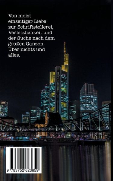 Eine LyriksammlungVon meist einseitiger Liebe zur Schriftstellerei, Verletzlichkeit und der Suche nach dem großen Ganzen. Über nichts und alles. Weil Großstädte ganz laut sind, Füße ohne Schuhe leise. Weil Großstädte voller Gefahren sind und nackte Haut unwahrscheinlich verletzbar. Winzige Gedanken, seltene Liebe, Beobachtungen, eine Reise durch Orte, Menschen, Begegnungen, Gefühle. Das Buch ist gedacht für Menschen, die ab und zu einen Happen Gedicht zu sich nehmen möchten.