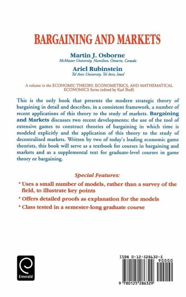 The formal theory of bargaining originated with John Nash's work in the early 1950s. This book discusses the developments in this theory. It uses the tool of extensive games to construct theories of bargaining in which time is modeled explicitly, and also applies the theory of bargaining to the study of decentralized markets.