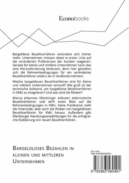 Bargeldlose Bezahlverfahren verbreiten sich immer mehr. Unternehmen müssen dabei in erster Linie auf die veränderten Präferenzen der Kunden reagieren. Gerade für kleine und mittlere Unternehmen kann das eine Herausforderung bedeuten, denn hier gestalten sich die Rahmenbedingungen für ein verändertes Bezahlverfahren anders als in Großunternehmen.Welche bargeldlosen Bezahlverfahren sind für kleine und mittlere Unternehmen sinnvoll? Wie groß ist der technische Aufwand, um bargeldlose Bezahlverfahren in KMU zu integrieren? Und was sind die Risiken?Marius Johannes Ellenbürger erläutert elektronische Bezahlverfahren und wirft einen Blick auf die Rahmenbedingungen in KMU. Seine Publikation stellt die Potenziale, aber auch die Risiken von bargeldlosen Bezahlverfahren für KMU heraus. Außerdem gibt Ellenbürger Handlungsempfehlungen für die erfolgreiche Etablierung von neuen Bezahlverfahren.Aus dem Inhalt:- Mobile-Payment;- Girocard;- Zahlungssystem;- Bezahlsystem;- Neukundengewinnung;- Kundenbindung