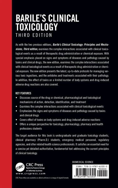 As with the two previous editions, Barile's Clinical Toxicology: Principles and Mechanisms, Third edition, examines the complex interactions associated with clinical toxicological events as a result of therapeutic drug administration or chemical exposure. With special emphasis placed on signs and symptoms of diseases and pathology caused by toxins and clinical drugs, the new edition, examines the complex interactions associated with clinical toxicological events as a result of therapeutic drug administration or chemical exposure. The new edition presents the latest, up-to-date protocols for managing various toxic ingestions, and the antidotes and treatments associated with their pathology. In addition, the effect of toxins on a limited number of body systems and drug-induced adverse drug reactions are also covered.