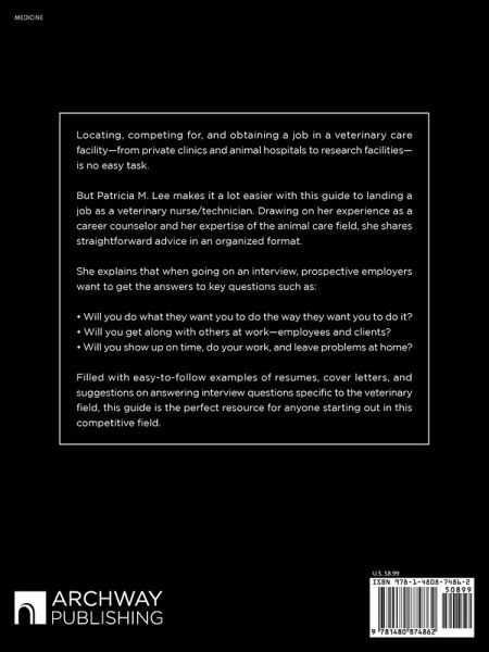 Locating, competing for, and obtaining a job in a veterinary care facility--from private clinics and animal hospitals to research facilities--is no easy task. But Patricia M. Lee makes it a lot easier with this guide to landing a job as a veterinary nurse/technician. Drawing on her experience as a career counselor and her expertise of the animal care field, she shares straightforward advice in an organized format. She explains that when going on an interview, prospective employers want to get the answers to key questions such as: Will you do what they want you to do the way they want you to do it? Will you get along with others at work--employees and clients?Will you show up on time, do your work, and leave problems at home? Filled with easy-to-follow examples of resumes, cover letters, and suggestions on answering interview questions specific to the veterinary field, this guide is the perfect resource for anyone starting out in this competitive field.