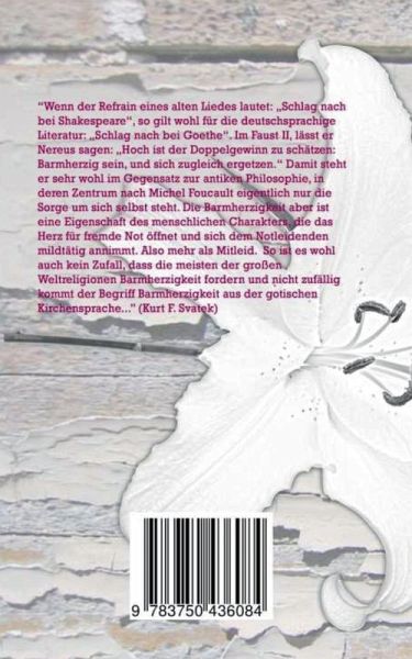 In dieser Anthologie äußern sich Österreichische Schriftsteller zum Thema Barmherzigkeit. Die Barmherzigkeit ist eine Eigenschaft des menschlichen Charakters, die das Herz für fremde Not öffnet und sich dem Notleidenden mildtätig annimmt. Also mehr als Mitleid.