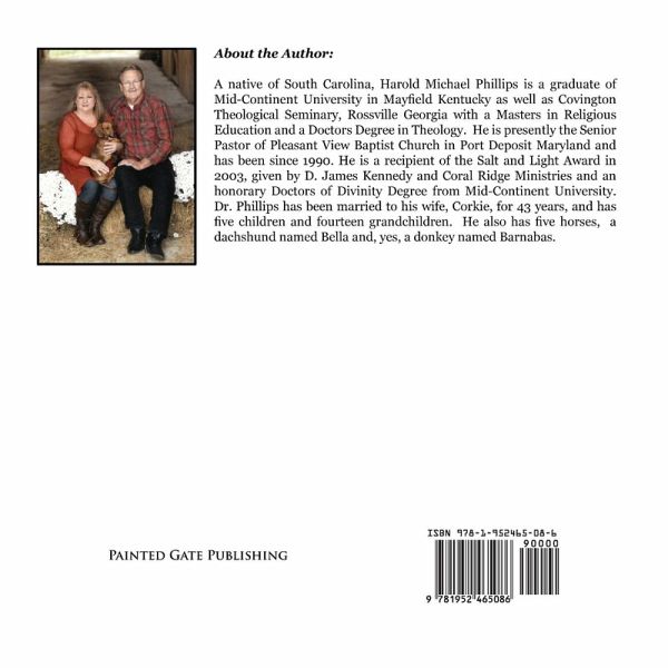 In the Third Episode of Barnabas' Adventures, Barnabas learns the value of being a giver instead of a taker. Barnabas discovers what it means to be filled with Joy, The joy of Christmas. In "Barnabas Discovers Christmas Joy", Barnabas learns the value of investing in others and Barnabas experienced how understanding what Christmas is about can set the stage for a life of giving and a life of happiness. Happiness is a choice and giving is the choice that brings happiness and Joy. About the Author: A native of South Carolina, Harold Michael Phillips is a graduate of Mid-Continent University in Mayfield Kentucky as well as Covington Theological Seminary, Rossville Georgia with a Masters in Religious Education and a Doctors Degree in Theology. He is presently the Senior Pastor of Pleasant View Baptist Church in Port Deposit Maryland and has been since 1990. He is a recipient of the Salt and Light Award in 2003, given by D. James Kennedy and Coral Ridge Ministries and an honorary Doctors of Divinity Degree from Mid-Continent University. Dr. Phillips has been married to his wife, Corkie, for 43 years, and has five children and fourteen grandchildren. He also has five horses, a dachshund named Bella and, yes, a donkey named Barnabas.