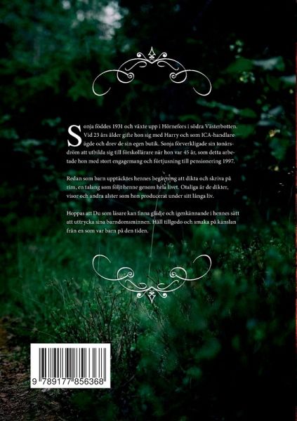 Hoppas att Du som läsare kan finna glädje och igenkännande i hennes sätt att uttrycka sina barndomsminnen. Håll tillgodo och smaka på känslan från en som var barn på den tiden.