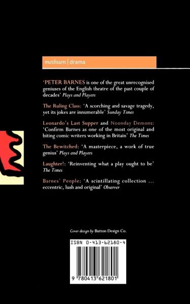 A selection of plays by "one of the most original and biting comic writers working in Britain" (The Times) The Ruling Class "is a scorching and savage tragedy, yet its jokes are innumerable...they throw wide open the windows of your mind, they enlarge your field of vision and they blow away the accumulated dust of ages" (Sunday Times); Leonardo's Last Supper and Noonday Demons are "two ironic plays of delusion...Peter Barnes' dialogue is rich in surprising verbal twists, intellectual allusions and splendid jokes". The Bewitched is "a feast for intellectuals as well as a rollicking example of folk theatre" (Plays and Players) while Laughter is a vicious satire on comedy itself and Barnes' People are eight monologues written for some of the great stars of the English stage which "let the listener into a whole and private world...their jokes in the face of existence were both burning and bitter." (Daily Telegraph) "Peter Barnes is one of the unrecognised geniuses of the English theatre" (Plays and Players)