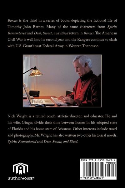 Barnes is the third in a series of books depicting the fictional life of Timothy John Barnes. Many of the same characters from Spirits Remembered and Dust, Sweat, and Blood return in Barnes. The American Civil War is well into its second year and the Rangers continue to clash with U.S. Grant's vast Federal Army in Western Tennessee.