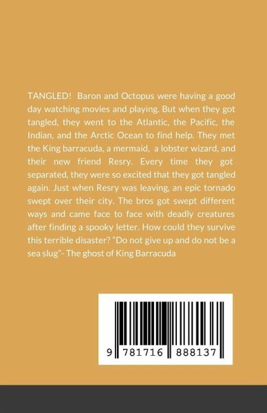 When Baron and Octopus were having a good day watching movies and playing, their tentacles got tangled. They traveled through the Atlantic, the Pacific, the Indian, and the Arctic Ocean looking for help to get out of the mess. They met king barracuda, a mermaid, a lobster wizard, and their new friend Resry. Every time they got separated, they were so excited that they got tangled again. Just when Resry was leaving, an epic tornado swept over their city. The bros got swept different ways and came face to face with deadly creatures after finding a spooky letter. How could they survive this terrible disaster?