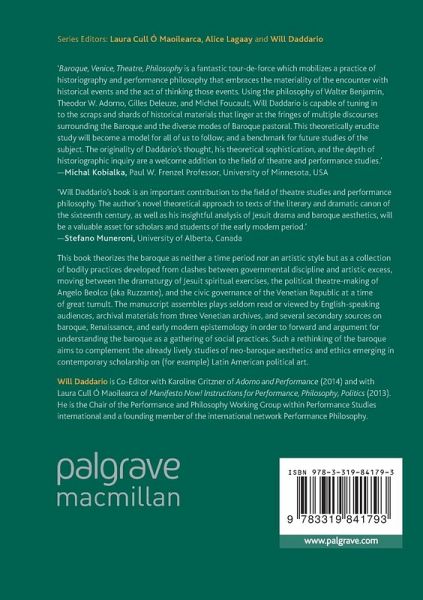 "Baroque, Venice, Theatre, Philosophy is a clearly written, closely argued, and carefully drawn study of the Italian baroque in historical (sixteenth and seventeenth centuries), architectural, and metaphorical space and time." (Spencer Golub,Theatre Journal, Vol. 71 (4), December, 2019)