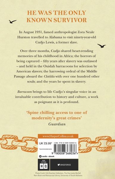 "That Zora Neale Hurston should find and befriend Cudjo Lewis, the last living man with firsthand memory of capture in Africa and captivity in Alabama, is nothing shy of a miracle. Barracoon is a testament to the enormous losses millions of men, women and children endured in both slavery and freedom-a story of urgent relevance to every American, everywhere." Tracy K. Smith, Pulitzer Prize winning author of Life on Mars and Wade in the Water