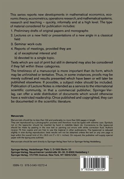 Lecture Notes in Economics and Mathematical Systems 185