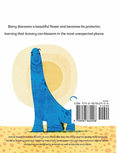 A delightful story of a dinosaur who finds the courage he didn't know he had awaits readers of author Joshua Swank's debut children's book, Barry the Brave. Barry discovers a beautiful flower and becomes its protector, learning that bravery can blossom in the most unexpected places. Along the way, Barry faces challenges that put his courage to the test, teaching young readers the power of perseverance and determination. · ENGAGING, HEARTFELT NARRATIVE with relatable challenges · VIBRANT, CAPTIVATING ILLUSTRATIONS that bring the story to life · CHARMING, BRAVE MAIN CHARACTER Barry the Brachiosaurus · INSPIRING JOURNEY where courage conquers fears · HELPS CHILDREN BUILD RESILIENCE by showing them how to face their fears · UPBEAT AND UPLIFTING MESSAGE that resonates with kids and adults · IDEAL for parents to read to their children and relate to real life situations Feathered Quill says: "Barry the Brave shows youngsters, in a gentle and encouraging way, that like Barry, they too have great courage within themselves." Newly Launched! Raising Barry, a book series that teaches kids valuable life lessons through imagination and creativity, is the result of Josh's entrepreneurial background, experience as a youth soccer coach, and competitive athlete. My goal is to inspire children to reach their full potential and to assist parents in guiding them along the way. Throughout the series, Barry's character grows as he builds on his bravery, kindness, teamwork, perseverance, and curiosity. Each book emphasizes one of the life lessons, allowing young readers to join Barry on exciting adventures while learning essential values and virtues. Together, these stories inspire children to be courageous, compassionate, determined, and curious, fostering their personal growth and development. Please visit the Raising Barry website (www.raisingbarry.com) for more information, or if you have any questions or suggestions.