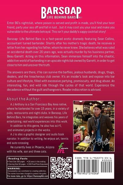 Over twenty years in the making, Barsoap is an erotic dramedy featuring Sean Collins, accountant. In an effort to uncover answers to his father’s suspicious death, he takes a bartending position at BG’s Night Club. It is owned by the cantankerous and treacherous Beauregard Garrett (ex-business partner of Sean’s father.) Sean is easily engulfed by the pitfalls of the bar culture/lifestyle. The answers are there, if he can survive the partying, unbridled sex, drugs and betrayal. This isn’t your daddy’s Cheers.