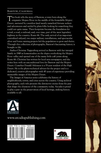 This book tells the story of Barstow, a town born along the enigmatic Mojave River in the middle of the formidable Mojave Desert, nurtured by countless (and mostly nameless) fortune seekers and adventurers and settled by plain folks looking for something they could not quite name. Their footprints became the foundation for a trail, a road, a railroad, and, over time, part of the most legendary highway in the country: Route 66. The early arrival of an important centralized railyard, two major military installations, and spectacular silver and borax mining projects led the population to grow and thrive. Through this collection of photographs, Barstow's fascinating history is brought to life.