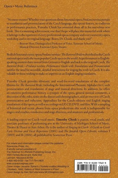 Bedrich Smetana's opera The Bartered Bride is cherished as the Czech national opera and is the most popular Czech opera in the world. This book presents a detailed guide to performing the opera in Czech and is an indispensable aid for those performing the work in English. It includes a performance history, discussions of the dances, word-for-word translations of the Czech, pronunciation through the International Phonetic Alphabet, appendixes, and an index.