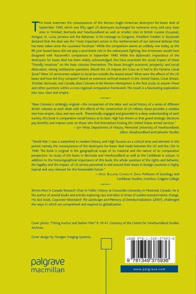 "World War II was a watershed in modern history and High focuses on a critical time and element in the period, namely the consequences of the destroyers-for-bases deal made between the UK and the USA in 1940. The book is original in the geographical scope of its material and the nature of its comparative perspective. Its study of the bases in Bermuda and Newfoundland as well as the Caribbean is unique. In addition to the historiographical importance of this book, the whole question of the rights and behavior, the legality and the impact, of US service personnel in and around their bases in foreign countries is highly topical and very relevant for the foreseeable future." - Nigel Bolland, Charles A. Dana Professor of Sociology and Caribbean Studies, Emeritus, Colgate College