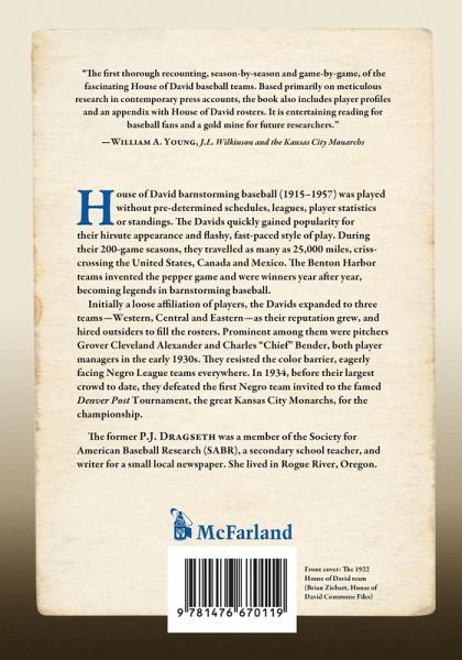 House of David barnstorming baseball (1915-1957) was played without pre-determined schedules, leagues, player statistics or standings. The Davids quickly gained popularity for their hirsute appearance and flashy, fast-paced style of play. During their 200 seasons, they travelled as many as 30,000 miles, criss-crossing the United States, Canada and Mexico. The Benton Harbor teams invented the pepper game and were winners year after year, becoming legends in barnstorming baseball. Initially a loose affiliation of players, the Davids expanded to three teams--Western, Central and Eastern--as their reputation grew, and hired outsiders to fill the rosters. Prominent among them were pitchers Grover Cleveland Alexander and Charlie "Chief" Bender, both player managers in the early 1930s. They resisted the color barrier, eagerly facing Negro League teams everywhere. In 1934, before their largest crowd to date, they defeated the first Negro team invited to the famed Denver Post Tournament, the great Kansas City Monarchs, for the championship.