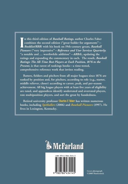In this third edition of Baseball Ratings, author Charles Faber combines the second edition (""great fodder for arguments""--Booklist) with his book on 19th-century greats, Baseball Pioneers (""very impressive""--Reference and User Services Quarterly; ""a notable and ... worthwhile addition""--ARBA), updating the ratings and expanding the commentary in each. The result, Baseball Ratings: The All-Time Best Players at Each Position, 1876 to the Present, is that rarest of rankings books--a time-tested, comprehensive reference work that invites reading. Batters, fielders and pitchers from all major leagues since 1876 are ranked by position and, for pitchers, according to role (e.g., starter, middle reliever, closer) according to career, peak, and per-season achievement. All big league players with at least five years of eligibility are rated, and appendices identify underrated and overrated players, rate multiposition players, and sort the great by handedness.